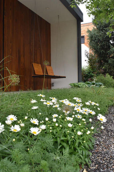 Our Client was seeking a contemporary garden for their newly constructed house. The existing garden was covered with a lawn and a maple tree in the middle. We decided to remove the entirety of the lawn and create a sustainable modern garden by replacing the grass with crushed granite chips and simple formed planting mounds. The planting palette was carefully thought through for year-round enjoyment and seasonal interest.